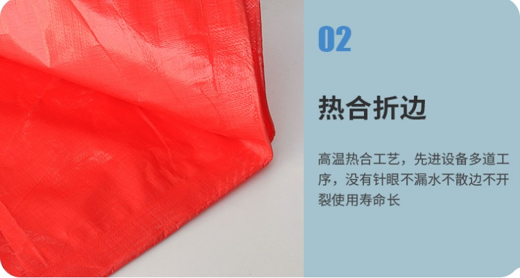 大紅色PE防水篷布熱合折邊:高溫熱合工藝,先進設(shè)備多道工序,沒有針眼不漏水、不散邊、不開裂,使用壽命長。