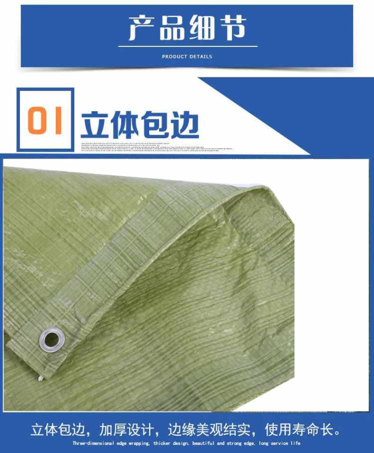 淡黃色網格色PE防水篷布立體包邊:加厚設計,邊緣美觀結實,使用壽命長。