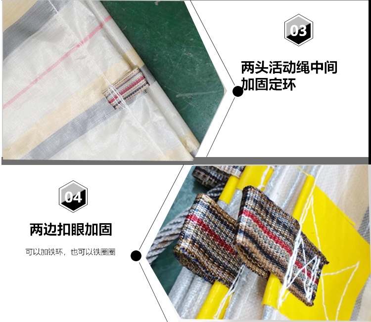 金包銀色PE防水篷布熱合折邊,高溫?zé)岷瞎に嚕冗M設(shè)備多道工序,沒有針眼不漏水不散邊不開裂使用壽命長。