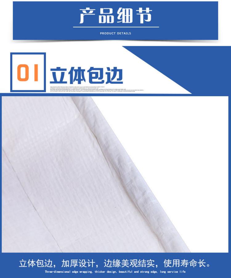 雙白色PE防水篷布立體包邊:立體包邊,加厚設(shè)計(jì),邊緣美觀結(jié)實(shí),使用壽命長(zhǎng)。